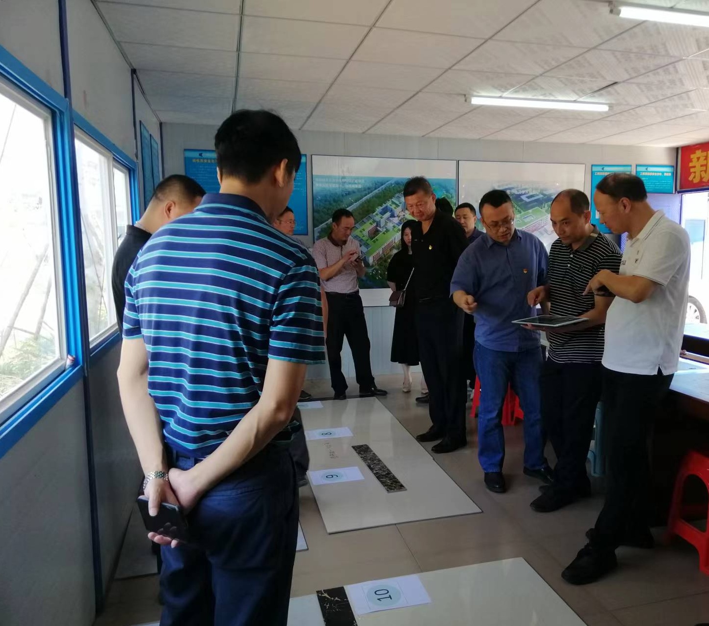 9月20日,学校党委书记李幼平、校长吴尽昭,副校长罗国湘、胡泽民一行参加图书馆地砖及吊顶材料选定。