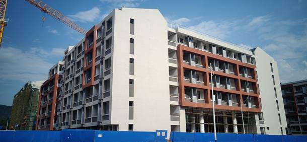 bevictor伟德新校区扩建项目学生公寓3#楼2021年7月份主要完成了如下工作内容:(1)西侧楼室内贴砖、刮腻子、水电、外墙软瓷基本完成,已移交家具安装单位安装家具;(2)东侧楼室内贴砖、刮腻子、水电、外墙软瓷完成约98%,即将于8月1日开始拆除外架并移交家具厂家安装家具。