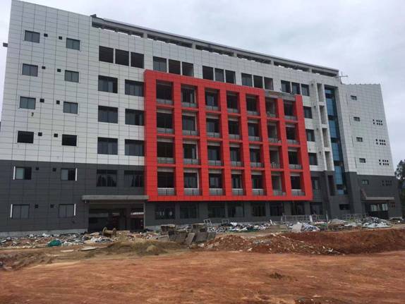 bevictor伟德新校区扩建项目教学实验楼组团1#、2#楼4月份主要完成了如下工作内容: 1#楼A区灯具、风扇安装完成,保温一体化板累计完成90%,连廊累计完成80%。1#楼B区地板砖累计完成85%、腻子累计完成60%,铁艺栏杆安装完成。(2)2#楼零星修补完成。