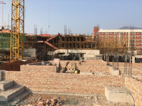 新校区扩建项目图书馆工程12月份形象进度:完成图书馆二层楼面结构施工,报告厅基础施工,目前进行三层楼板结构施工、报告厅回填施工。