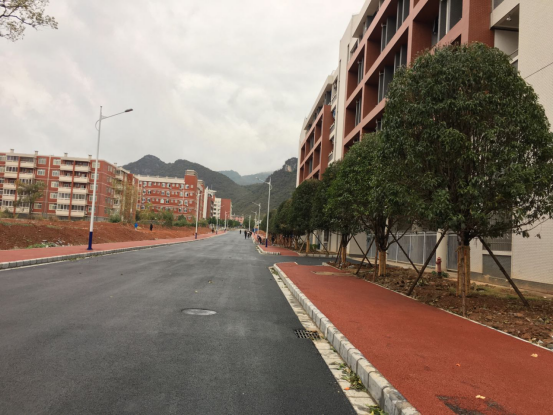 新校区校园道路工程12月份形象进度:道路面层沥青混凝土施工、人行彩色沥青混凝土道施工;B、C标段行道树施工。
