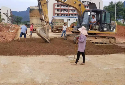 新校区校园道路工程9月份形象进度:A标段路床填筑,B、C标段施工通信、电力、给水管道。
