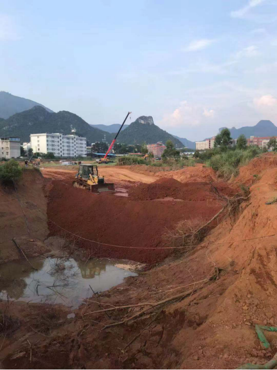 新校区校园道路工程8月份形象进度:A标段鱼塘抽水、鱼塘软弱基础处理、排水管道施工,B、C标段排水管道施工,一层水稳施工。