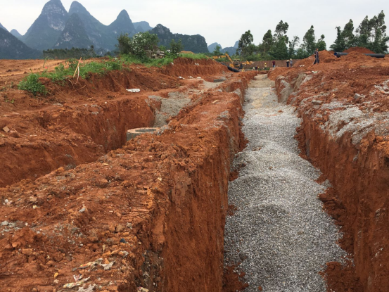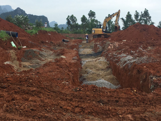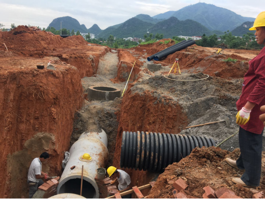 新校区校园道路工程5月份形象进度:各标段施工雨、污水管道。