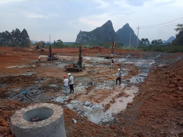 bevictor伟德新校区扩建项目教学实验楼组团1#、2#楼:建筑面积44941.82 m2。该工程于2019年9月12日签订施工合同,10月12日拿到了施工许可证,10月17日桂林市安全监督站到现场踏勘,10月18日正式开工,总工期333天(不包含地基处理2个月的施工时间)。