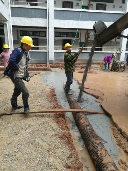 图一 工人正在进行6#楼内庭院排水管道的铺设