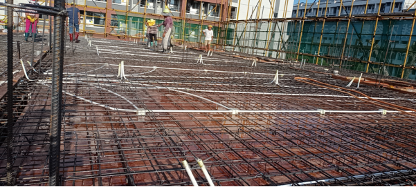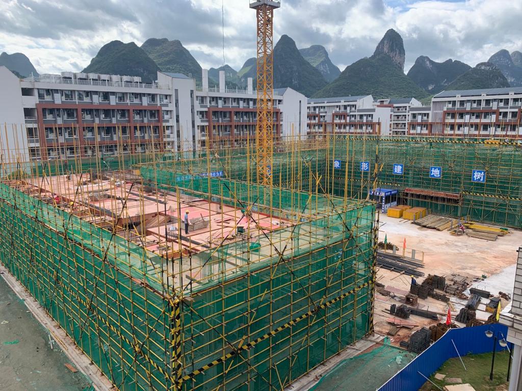 学生公寓4#楼2022年8月份主要完成了如下工作内容:(1)完成基础地梁施工;(2)完成一层地面施工;(3)完成二层楼板和三层楼板施工,四层楼板施工完成40%.
