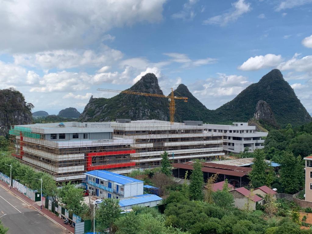 实训中心1-4#楼8月份形象进度:实训中心1#楼屋面刚性层施工完毕,外墙板完成80%。实训中心2#楼屋面刚性层施工完毕。实训中心3#楼屋面刚性层施工完毕。实训中心4#楼屋面防水及保温施工完毕。