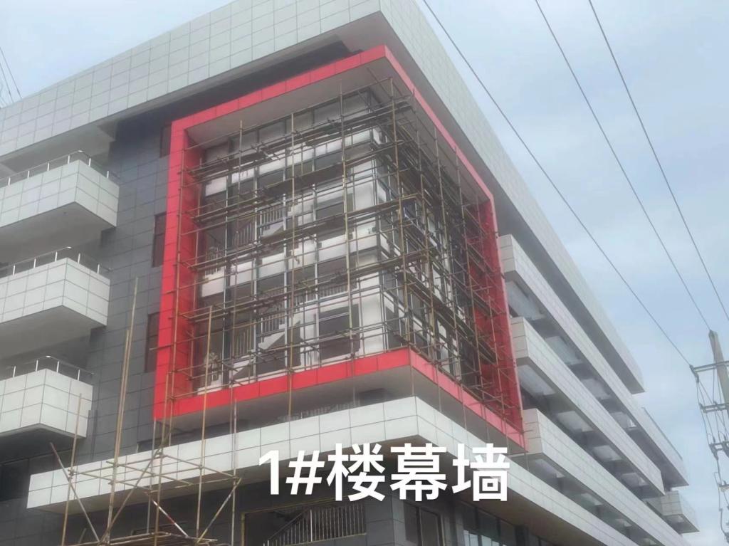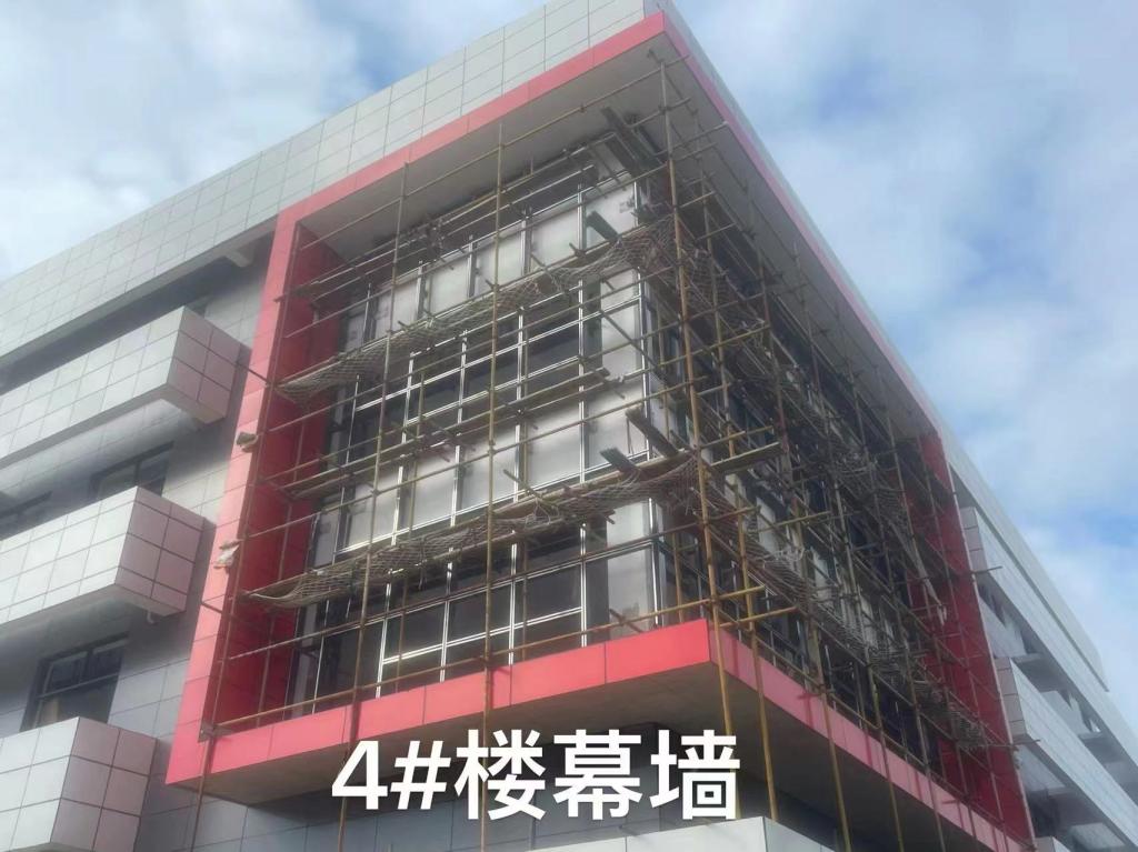 实训中心1-4#楼11月份形象进度:完成屋面钢结构构架,玻璃幕墙构架,装饰工程完成80%,水电安装完成80%。