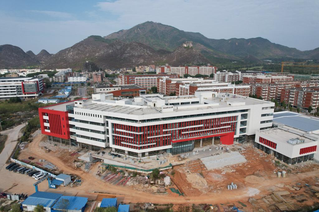 新校区扩建项目图书馆及学术报告厅工程2022年12月份形象进度:完成2-6层地砖、内墙腻子、风管及保温棉、外墙一体化装饰板、室外花岗岩。