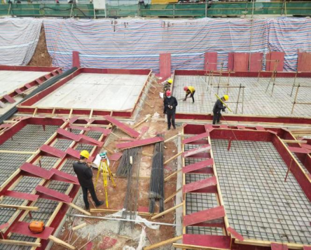 学生公寓1#楼基础承台底筋间距量测