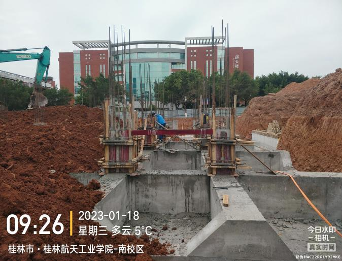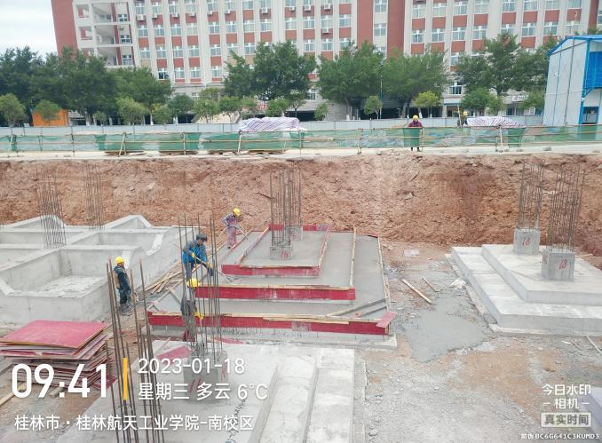 当日主要进行的工作有:1、AF-W轴交1-7筏板基础砼浇筑。2、AG轴交15-17轴承台台阶砼浇筑。3、AH-AG轴交8-10轴基础柱砼浇筑。4、U-S轴交12-14轴基础柱砼浇筑。5、AF轴交13轴基础柱砼浇筑。6、施工2区土方回填。7、临时设施大门及电线安装。