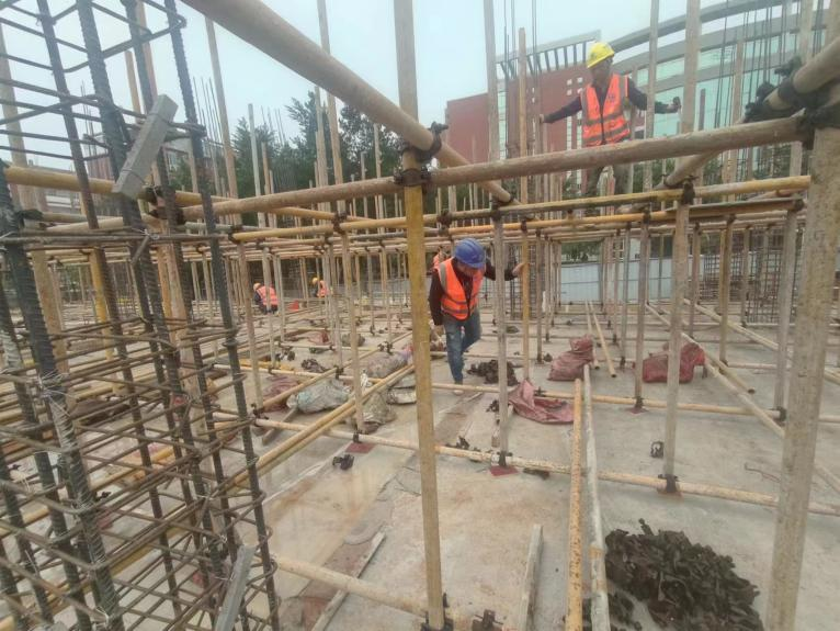 主要工作面:1、施工1区三层梁板模板安装。2、施工1区二层内架加固。3、施工2区二层满堂架加固、钢筋绑扎。4、施工1、2区外架搭设。5、施工3区1层满堂加搭设。6、第二钢筋加工场安全防护棚安装。其他事项:-3.500~7.050层,1~18轴交AE~AJ轴二层柱钢筋验收合格