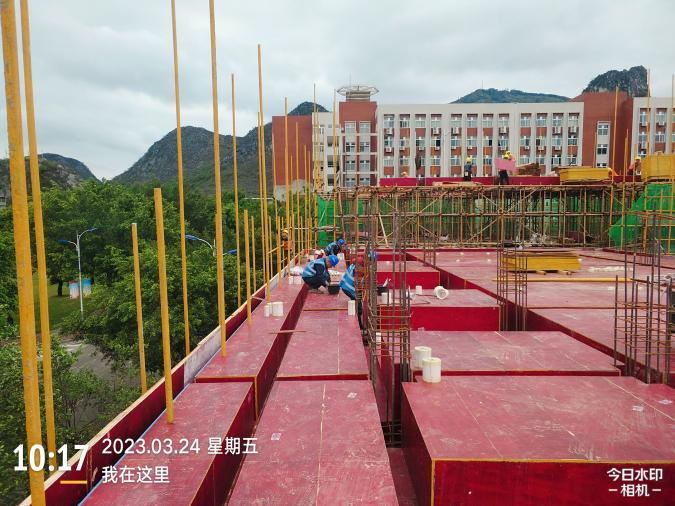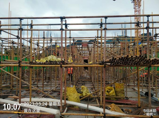 主要工作面:1、施工1区四层梁板模板安装。2、施工2区三层梁板安装及柱头凿毛。3、施工3区二层梁板钢筋绑扎。4、筏板AF -W轴三层水电安装及模板安装。5、筏板M-D轴二层内架搭设。6、施工3区二层梁板混凝土浇筑。