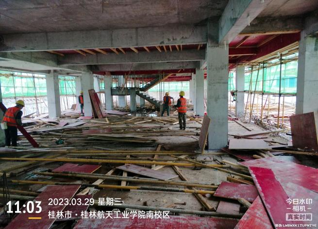 主要工作面:1、施工1区一层模板拆除。2、施工1区四层梁板钢筋绑扎。3、施工2区三层内架搭设。4、施工2区四层模板安装。5、施工3区二层柱模板加固及楼梯间钢筋绑扎。6、钢筋加工。