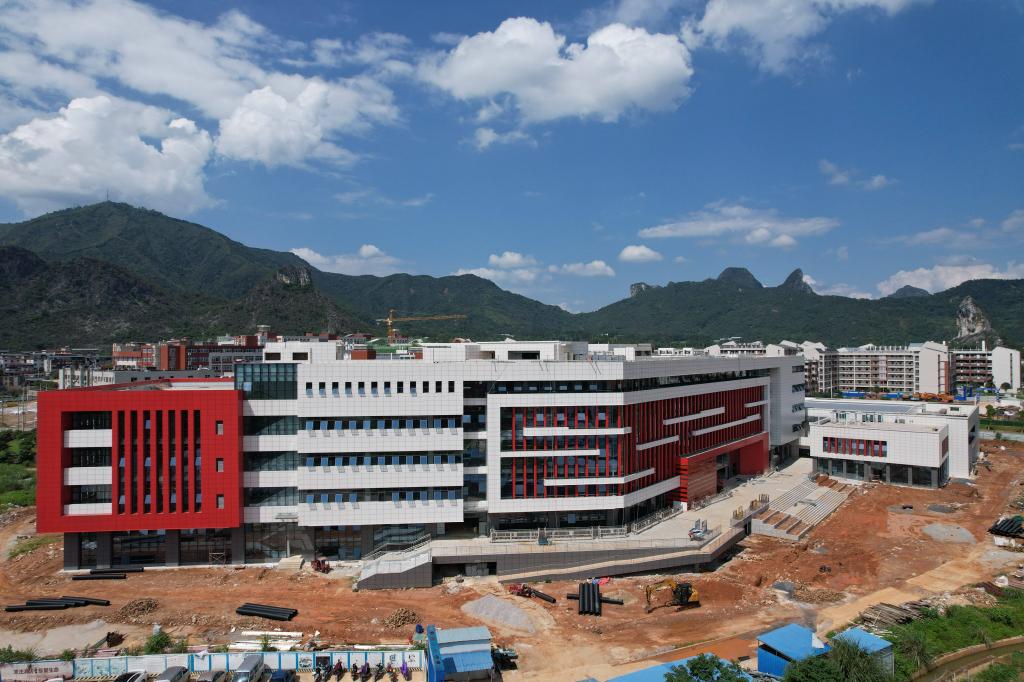 新校区扩建项目图书馆及学术报告厅工程2023年5月份形象进度:完成工程量约99%,正在进行室内零星修补及室外附属工程。