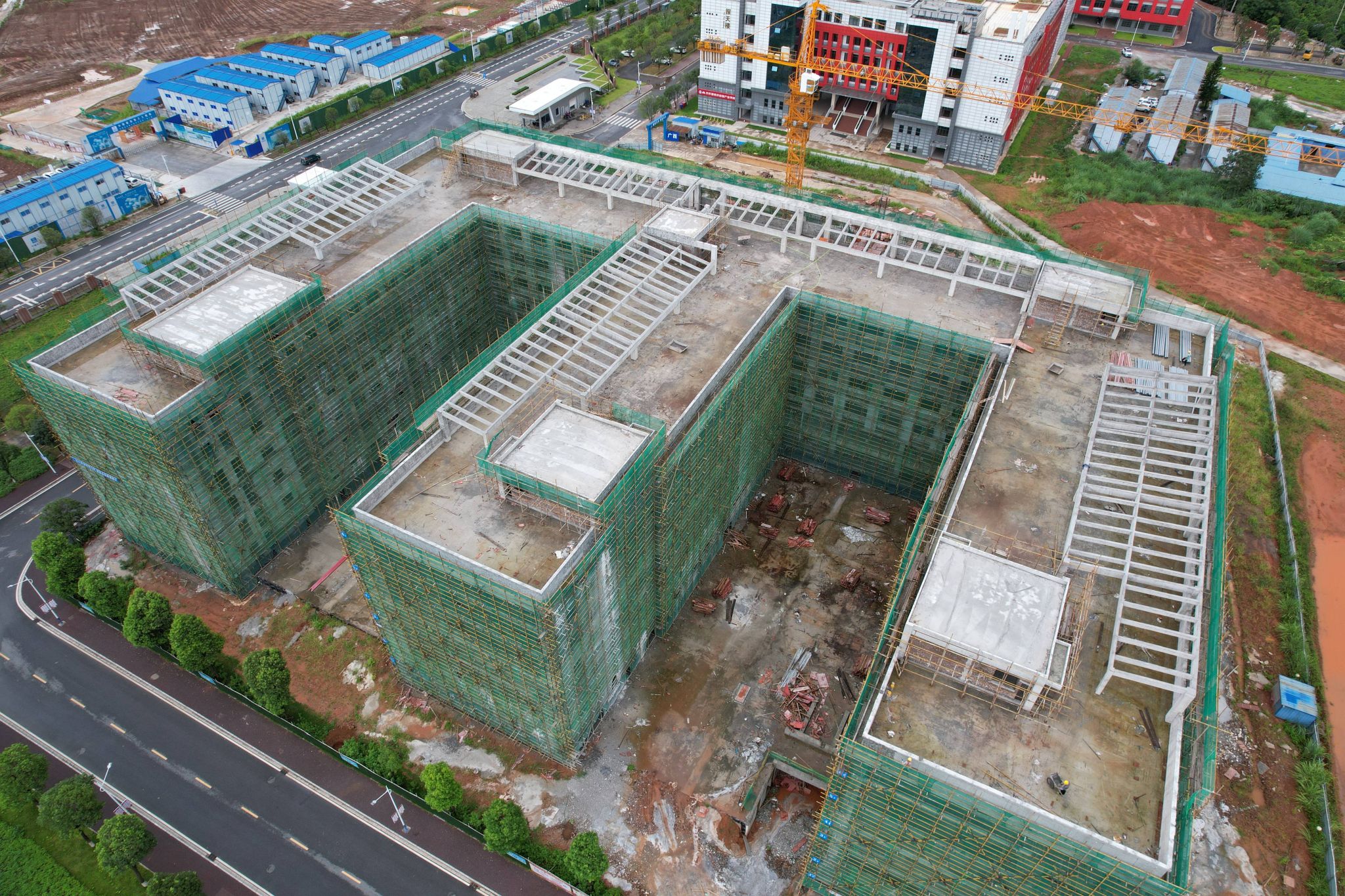 行政办公及院系教师办公楼7月份形象进度:完成全部砌筑工程、批灰完成至3楼。