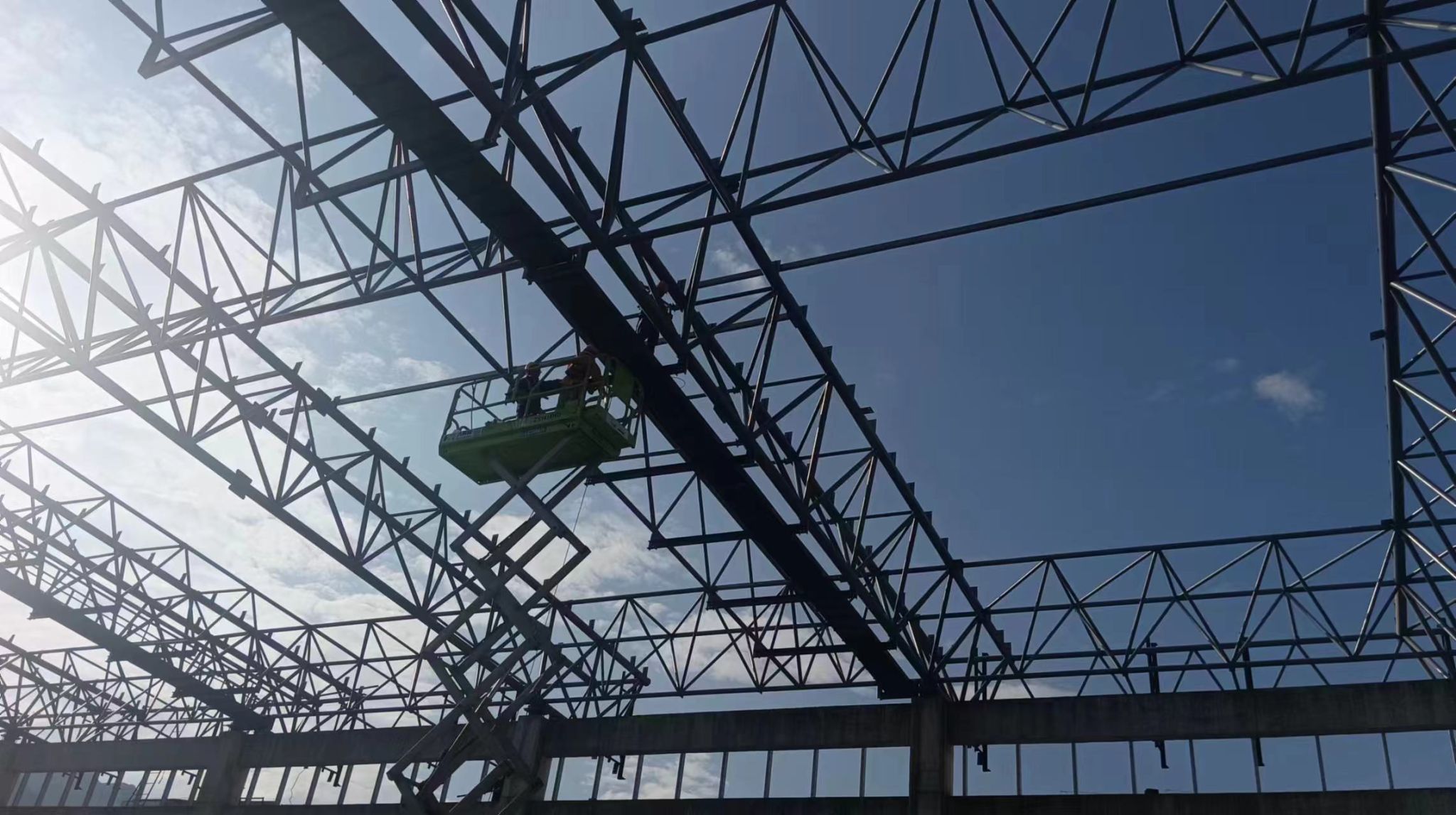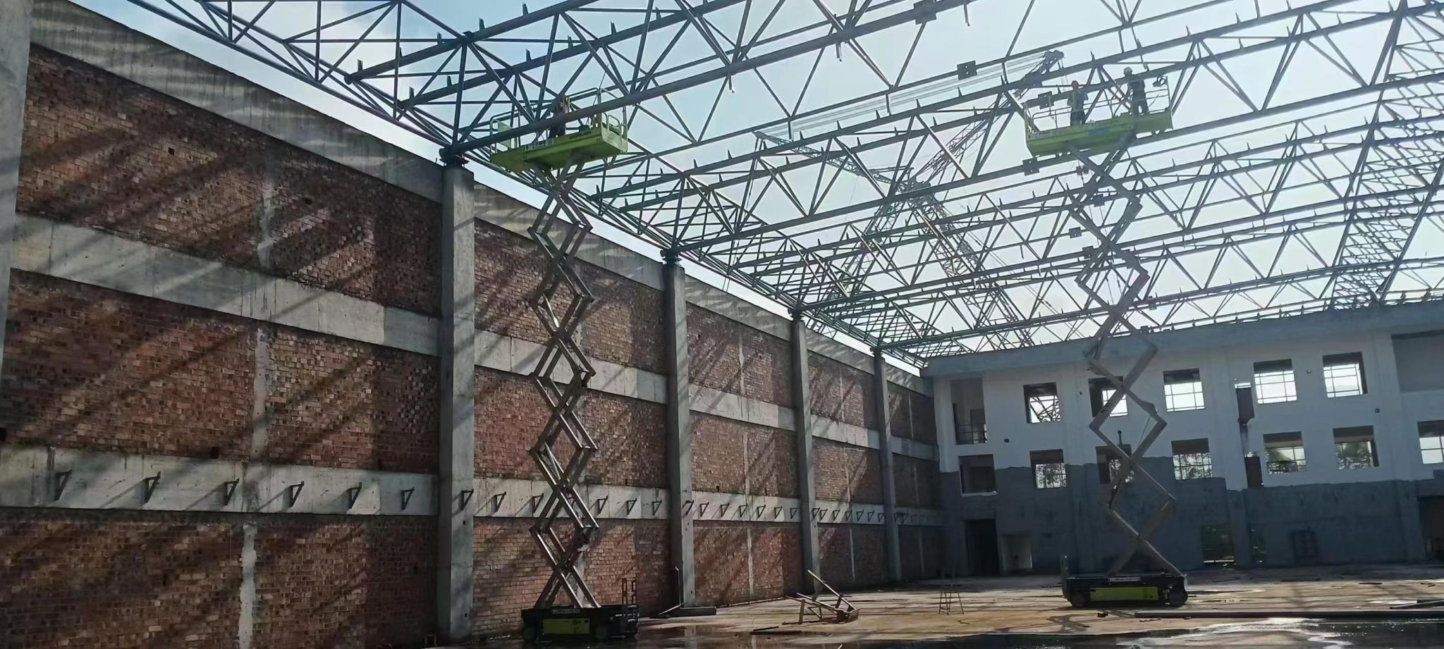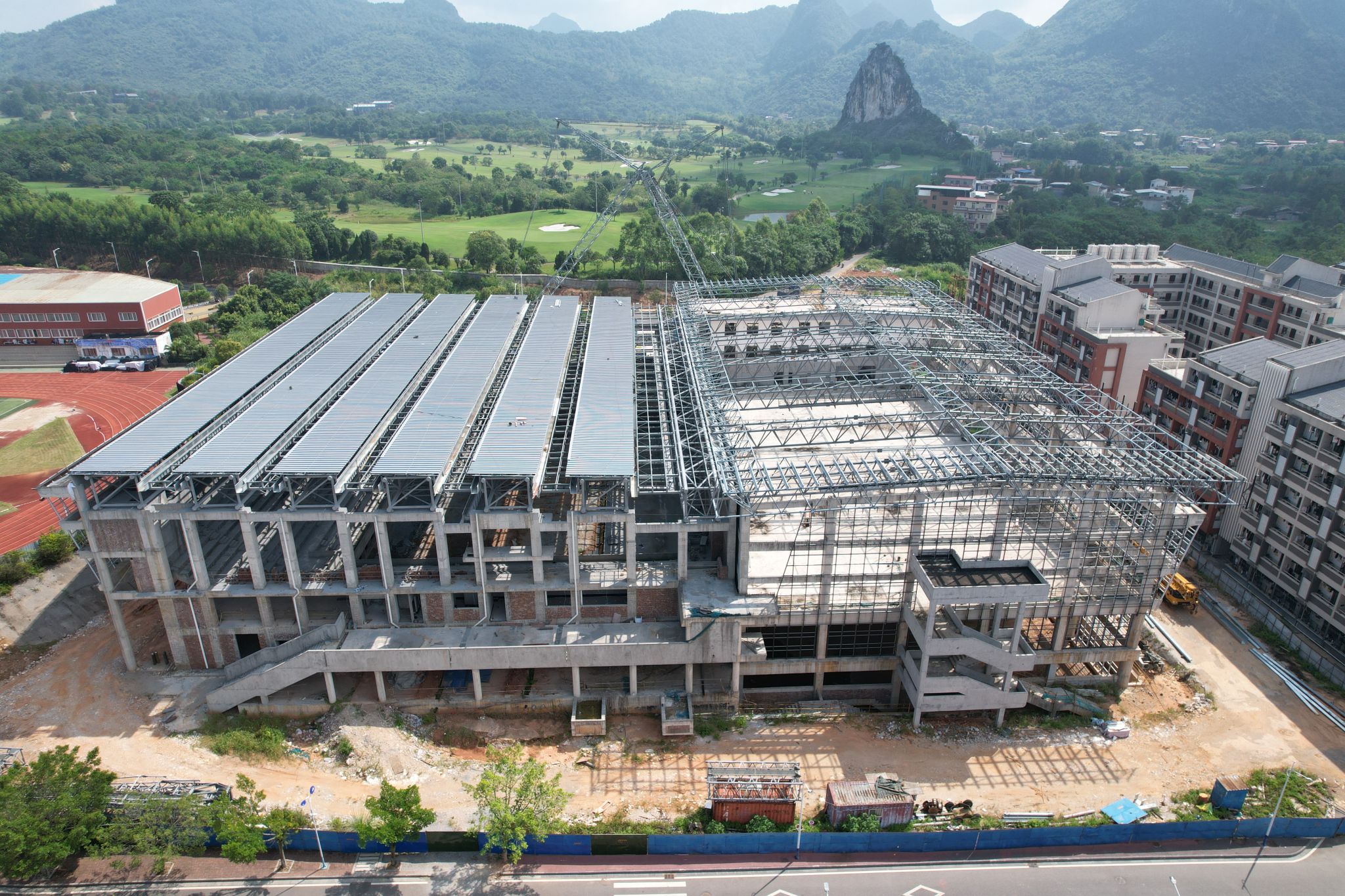 新校区扩建项目综合体育馆工程2024年9月份形象进度:A区完成屋面钢桁梁,B区完成屋面钢桁梁及屋面铝镁锰板。