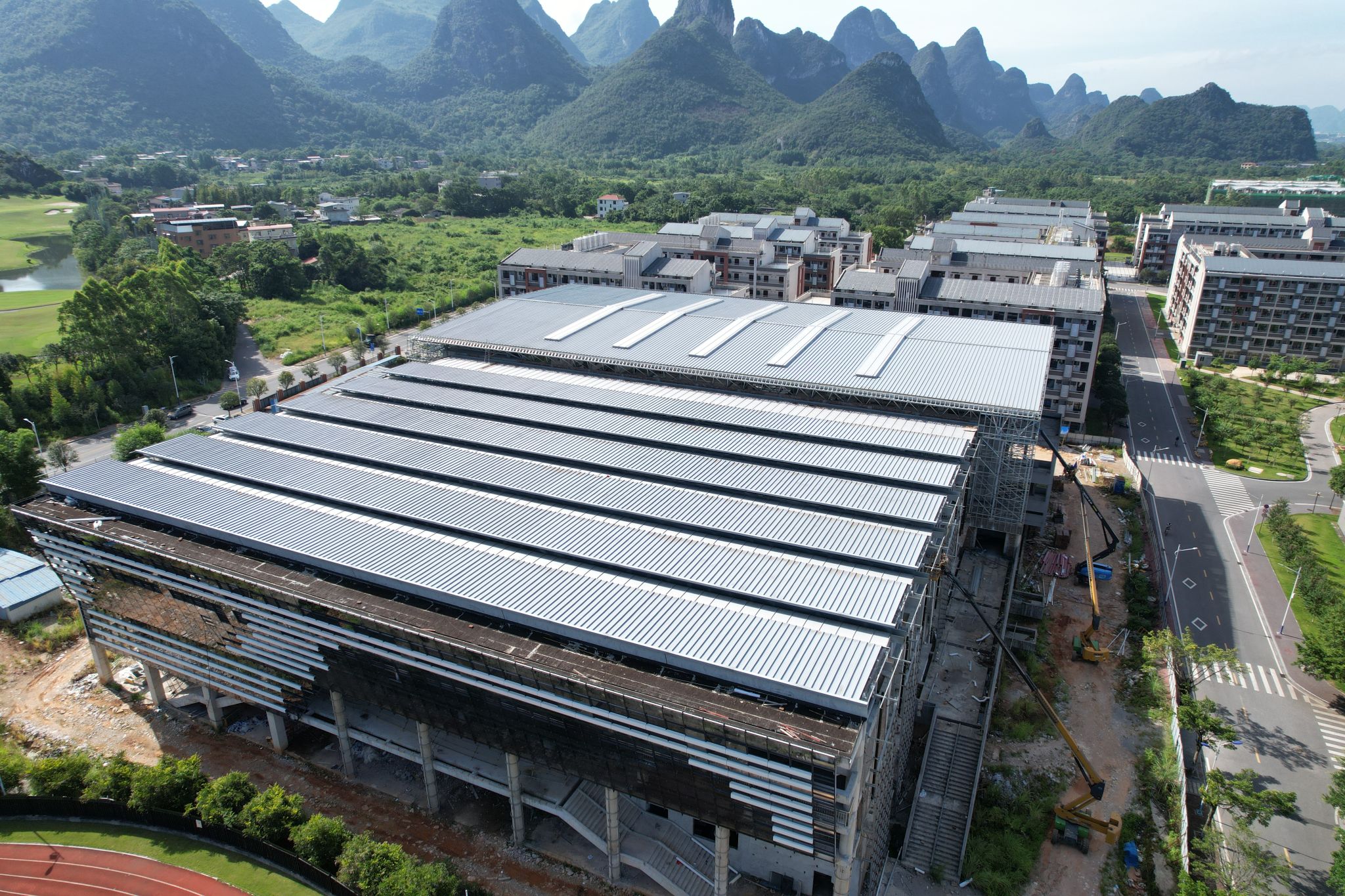 新校区扩建项目综合体育馆工程2025年9月份形象进度:B区水电65%;B区西面一体化板及线条安装60%;A区二层网球馆吸音板85%;B区地面铺装5%;A区卫生间墙砖65%;总消防、强排风管60%;B区刮腻子60%;玻璃幕墙90%;包梁包柱70%